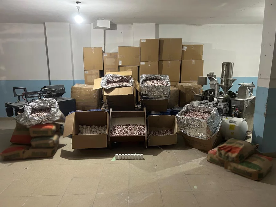 Adreste yapılan aramalarda, uyuşturucu yapımında kullanılan 250 kilogram katkı maddesi, 3 milyon 350 bin adet etken maddeli sentetik ilaç, 700 bin adet doluma hazır boş kapsül, 7 adet uyuşturucu hap üretiminde kullanılan makine, 3 adet hap ambalajında kullanılan şerit ele geçirildi.