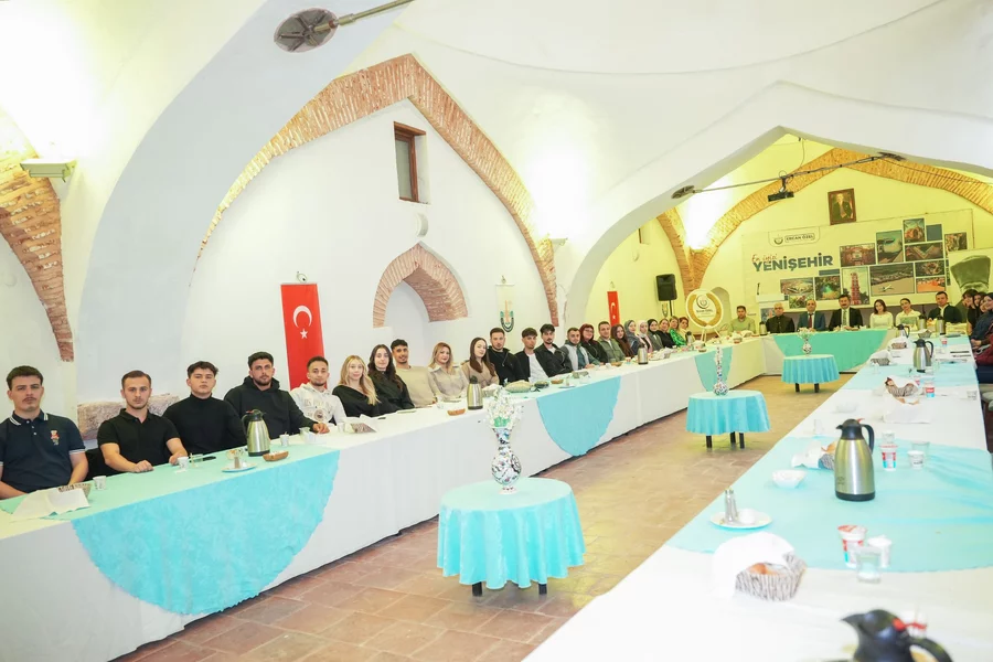 BURSA, 19 Mart 2026 Perşembe, 11:12Yenişehir Belediye Başkanı Ercan Özel, Bursa Uludağ Üniversitesi (BUÜ) İbrahim Orhan Meslek Yüksekokulu Öğrenci Topluluğu ile Sinanpaşa Külliyesi'nin tarihi atmosferinde düzenlenen iftar yemeğinde buluştu. Samimi bir ortamda gerçekleşen programa Okul Müdürü Prof. Dr. Nazmi İzli, Kent Konseyi Başkanı Hakan Erdoğan, akademisyenler ve çok sayıda öğrenci katıldı.