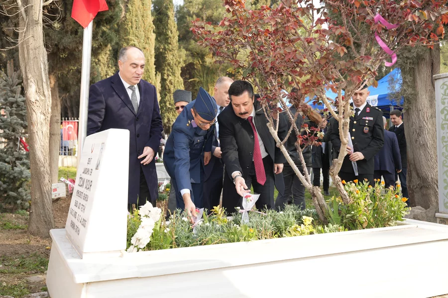 BURSA, 20 Mart 2026 Cuma, 09:45Yenişehir'de 18 Mart Çanakkale Zaferi ve Şehitler Günü dolasıyla çeşitli programlarda düzenlendi. Programlar, sabah saatlerinde Heykel Meydanı'nda gerçekleştirilen resmi törenle başladı. İlçe protokolü ve vatandaşların yoğun katılım gösterdiği törende, çelenk sunumu yapılarak saygı duruşunda bulunuldu. Resmi programın ardından ziyaretler şehitliklerle devam etti. Yenişehir, Selimiye ve Kıblepınar Şehitlikleri'ne giden heyet, vatan topraklarını müdafaa ederken canlarını feda eden kahramanlarımızın kabirleri başında Kur'an-ı Kerim tilaveti dinleyerek dualar etti. Şehit ailelerinin de katıldığı ziyaretlerde duygusal anlar hakim olurken, kahramanların mezarlarına karanfiller bırakılarak şükran sunuldu. Günün maneviyatı, akşam saatlerinde Sinanpaşa Külliyesi'nde kurulan iftar sofrasında paylaşıldı. İlçe protokolü; şehit aileleri ve gazilerle aynı sofrada buluştu.