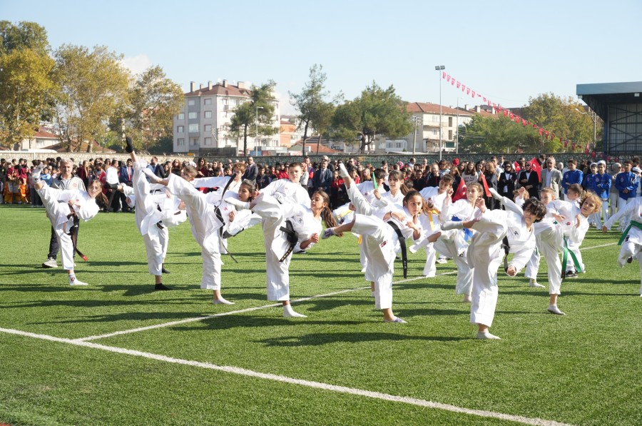 Program, Kaymakam Ümit Altay'ın selamlama konuşmasıyla başladı. Ardından Yenişehir Halk Eğitimi Merkezi Halk Oyunları ekibinin sergilediği yöresel danslar, izleyicilerden büyük alkış aldı. Öğrencilerin Cumhuriyet temalı şiirleri duygulu anlara sahne olurken, spor gösterileri de izleyenlere coşkulu anlar yaşattı.