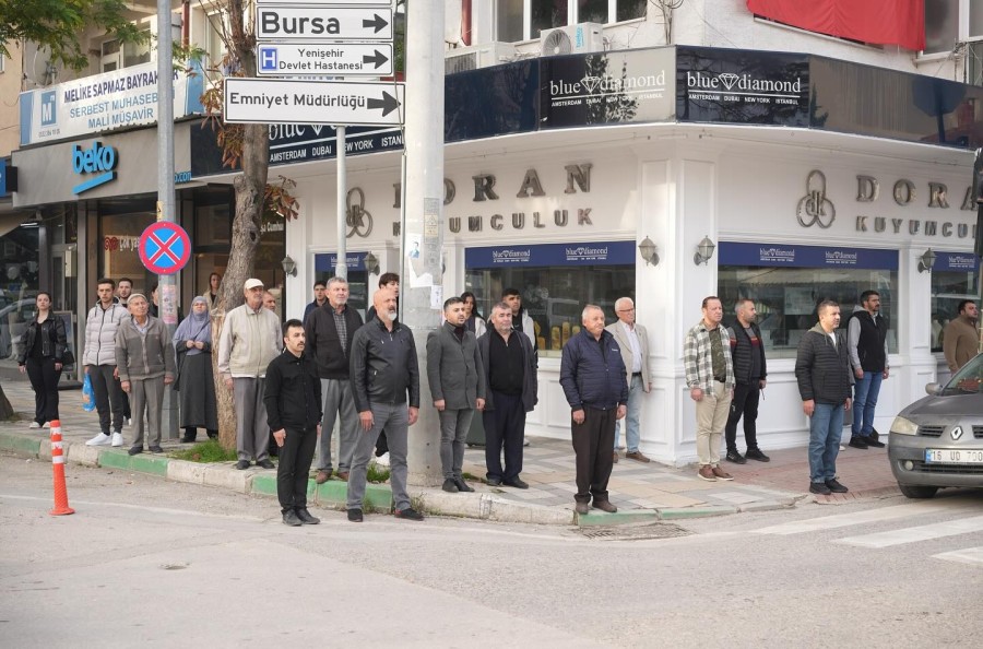 BURSA, 10 Kasım 2025 Pazartesi, 12:41Gazi Mustafa Kemal Atatürk'ün ebediyete irtihalinin 87'nci yıl dönümünde, Türkiye'nin dört bir yanında olduğu gibi Yenişehir'de de hayat saat 09.05'te durdu. Yenişehir Heykel Meydanı'nda düzenlenen 10 Kasım Atatürk'ü Anma Töreni, saygı duruşu ve İstiklal Marşı'nın okunmasıyla başladı.