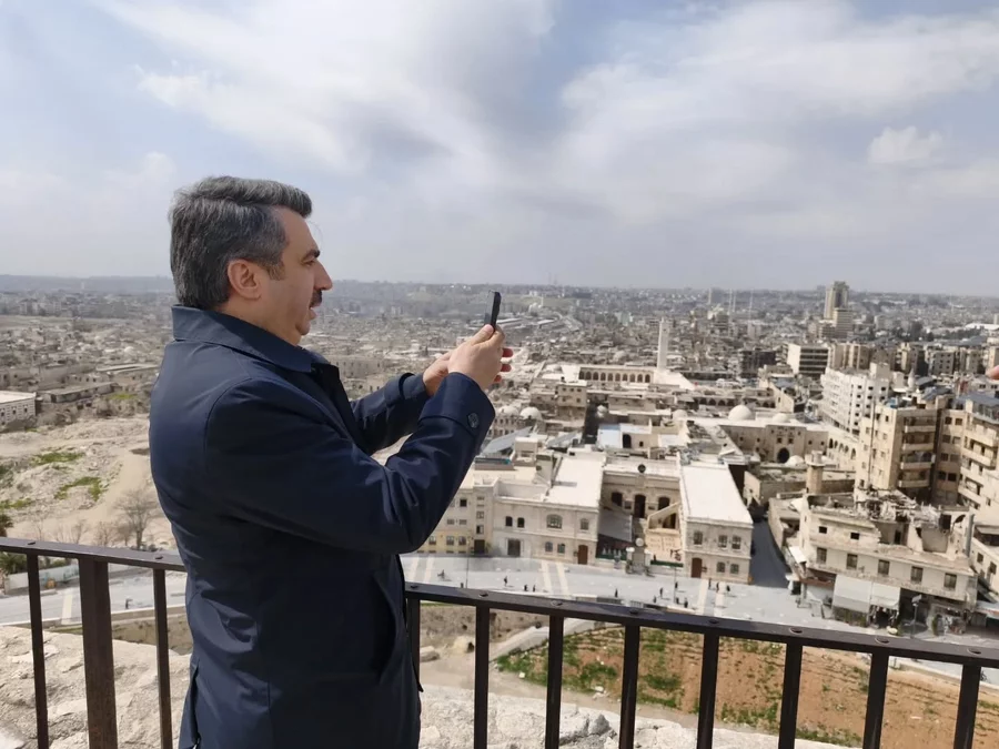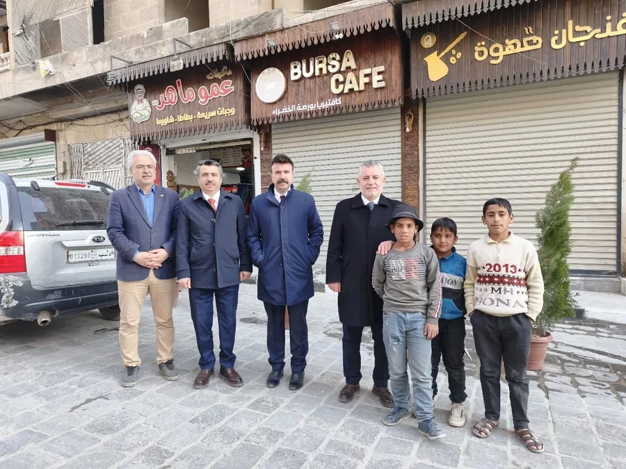 Bölgedeki temasları kapsamında Halep Başkonsolosumuz Muammer Hakan Cengiz'i, TİKA Halep Ofisi'ni, Suriye Arap Cumhuriyeti El Bab Kaymakamı Dr. Hussein Al-Shehabi'yi de ziyaret eden başkan Yılmaz ve beraberindekiler, Halep Kalesi, Emevi Camii ve Halep çarşısında da incelemelerde bulundular. Ülkede yıllarca süren savaşın ve çatışmaların etkisinin hala devam ettiğini aktaran Başkan Yılmaz, "Kadim şehir Halep'te, tarihin derin izleriyle savaşın bıraktığı hatıraları bir arada görmek insanın yüreğine dokunuyor. Savaş döneminde şehrimizde büyüyen iki kardeşimizin Halep'te açtığı Bursa Kafe'ye tesadüf ettik. Ülkeler arasında kurulan dostluk köprülerinin, kardeşlik ve dayanışmamızın bir nişanesi olan Bursa Kafe'yi görmek yüreğimize bir nebze de olsa su serpti. Bu ziyaretlerimizi bize Türkiye'nin Türkiye'den daha büyük olduğunu bir kez daha gösterdi. Bizler her daim kardeşlerimizin yanında olmaya, gönül bağımızı ve dayanışmamızı büyütmeye devam edeceğiz" ifadelerini kullandı.
