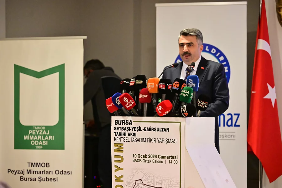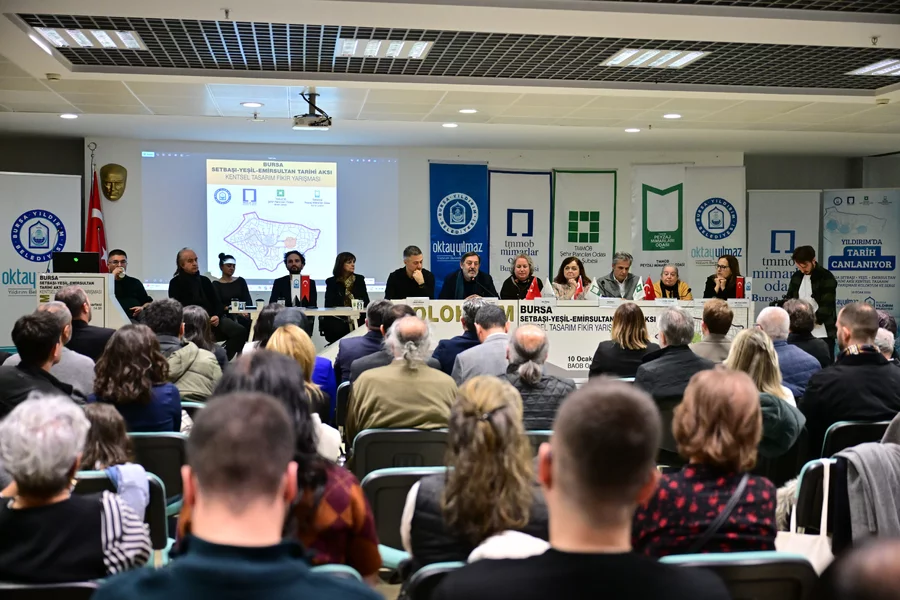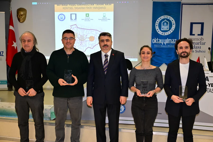 BURSA, 11 Ocak 2026 Pazar, 09:56Yıldırım Belediyesi; tarihi, mimarisi, kültürel dokusu ve dini mekanlarıyla Türkiye'nin en önemli turizm güzergahlarından biri olan, Setbaşı, Yeşil, Emirsultan hattını hak ettiği değere kavuşturmak için 'Bursa Setbaşı-Yeşil-Emirsultan Tarihi Aksı Kentsel Tasarım Fikir Yarışması' düzenlemişti. Yıldırım Belediyesi öncülüğünde, Mimarlar Odası Bursa Şubesi, Şehir Plancıları Odası Bursa Şubesi ve Peyzaj Mimarları Odası Bursa Şubesi işbirliğiyle düzenlenen yarışmanın sonuçları geçtiğimiz ay açıklanmıştı. Yarışmaya başvuran projeleri titizlikle değerlendiren jüri; toplam 11 eseri ödüle layık bulmuştu. Yarışma sürecinin tamamlanmasının ardından, 'Bursa Setbaşı-Yeşil-Emirsultan Tarihi Aksı Kentsel Tasarım Fikir Yarışması Kolokyum, Sergi ve Ödül Töreni' gerçekleştirildi. Bursa Akademik Odalar Birliği Ortak Toplantı Salonu'nda gerçekleştirilen törene; Yıldırım Belediye Başkanı Oktay Yılmaz'ın yanı sıra, Yıldırım Kaymakamı Metin Esen, AK Parti Bursa Milletvekili Emine Yavuz Gözgeç, CHP Bursa Milletvekili Hasan Öztürk, Büyükşehir Belediyesi Genel Sekreter Yardımcısı Nazlı Yazgan, Mimarlar Odası Bursa Şubesi Başkanı Şirin Rodoplu, Şehir Plancıları Odası Bursa Şubesi Başkanı Cenk Köklü, Peyzaj Mimarları Odası Bursa Şubesi Başkanı Zehra Çakır, AK Parti Bursa İl Başkan Yardımcısı Muhammed Ali Kaya, AK Parti Yıldırım İlçe Başkan Vekili Kadir Batmaz, akademisyenler, meslek odalarının temsilci ve üyeleri ile basın mensupları katıldı.