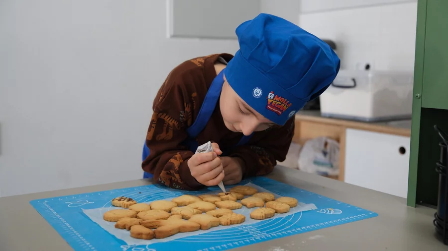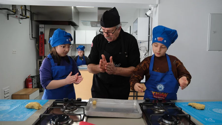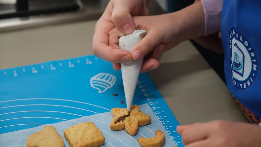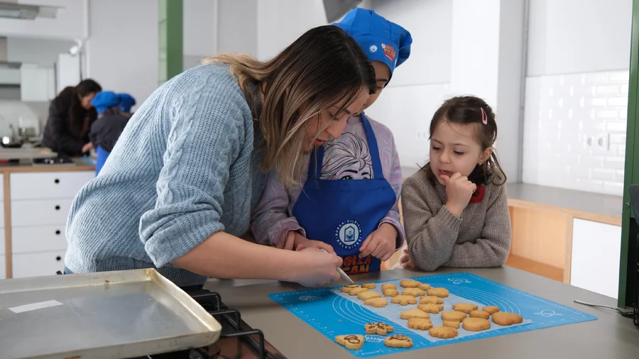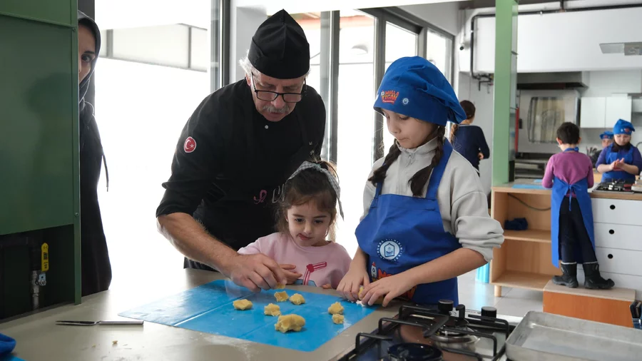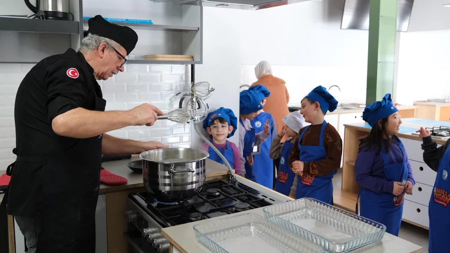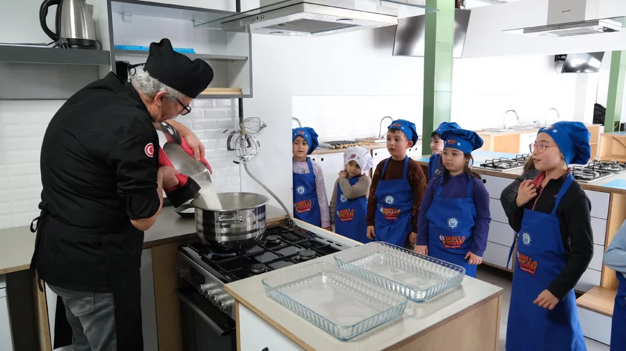 BURSA, 02 Mart 2026 Pazartesi, 15:12Yıldırım Belediyesi, Ramazan ayının manevi iklimini çocuklara hissettirmek için çalışmalarına devam ediyor. Molla Yegan Çocuk Üniversitesi'nde düzenlenen 'Küçük Şeflerden Ramazan'a Özel Tatlılar' etkinliği renkli görüntülere sahne oldu. Çocuklara paylaşma, dayanışma ve birlik ruhunu aşılamayı amaçlayan etkinlik kapsamında mutfağa giren çocuklar, geleneksel Türk mutfağının sevilen tatlılarından süt helvası ve şekerpare yapmayı öğrendi. Çocuklar yaptıkları tatlıları ise iftarda aileleri ile birlikte yediler.