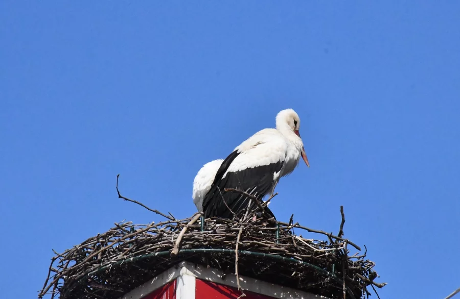 İki leylekten biri bu yıl önce İznik merkezindeki saat kulesinde bulunan yuvasına geldi. Aradan geçen dört günün ardından eşi de yuvaya gelerek ikinci yıllarında yeniden İznik'te buluştular.