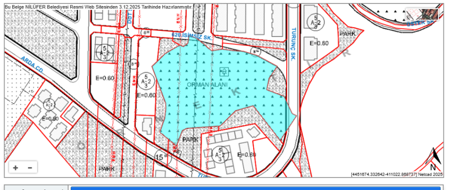Bu yerin geçen sene 24 ay vade imkanıyla Çevre, Şehircilik ve İklim Değişikliği Bakanlığı Kentsel Dönüşüm Başkanlığı tarafından "orman alanı+yol" imar durumuyla 28 milyon 591 bin liraya satışa çıkarıldığını belirtelim ve devam edelim: